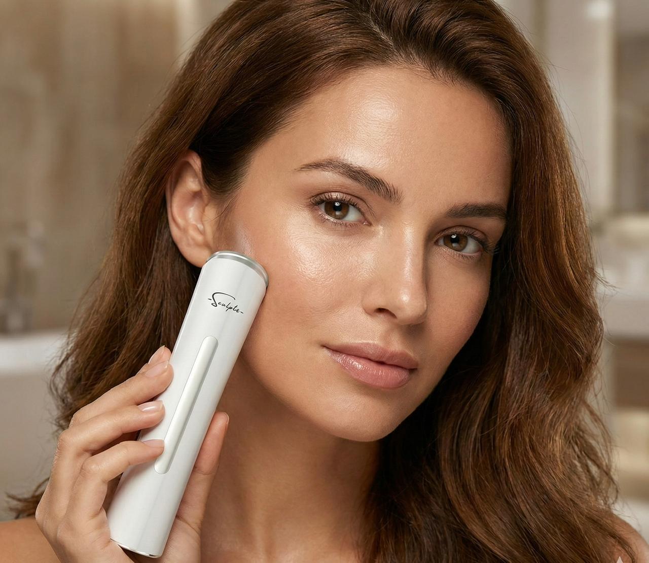 Sculpté uses targeted massage and toning technology to stimulate blood flow, break down fat deposits, and smooth skin texture. With consistent use, you’ll notice firmer, more radiant skin.